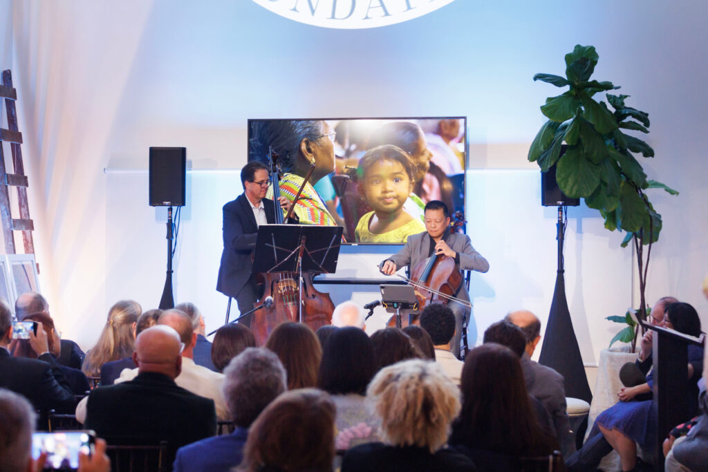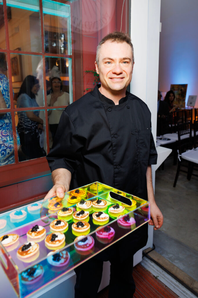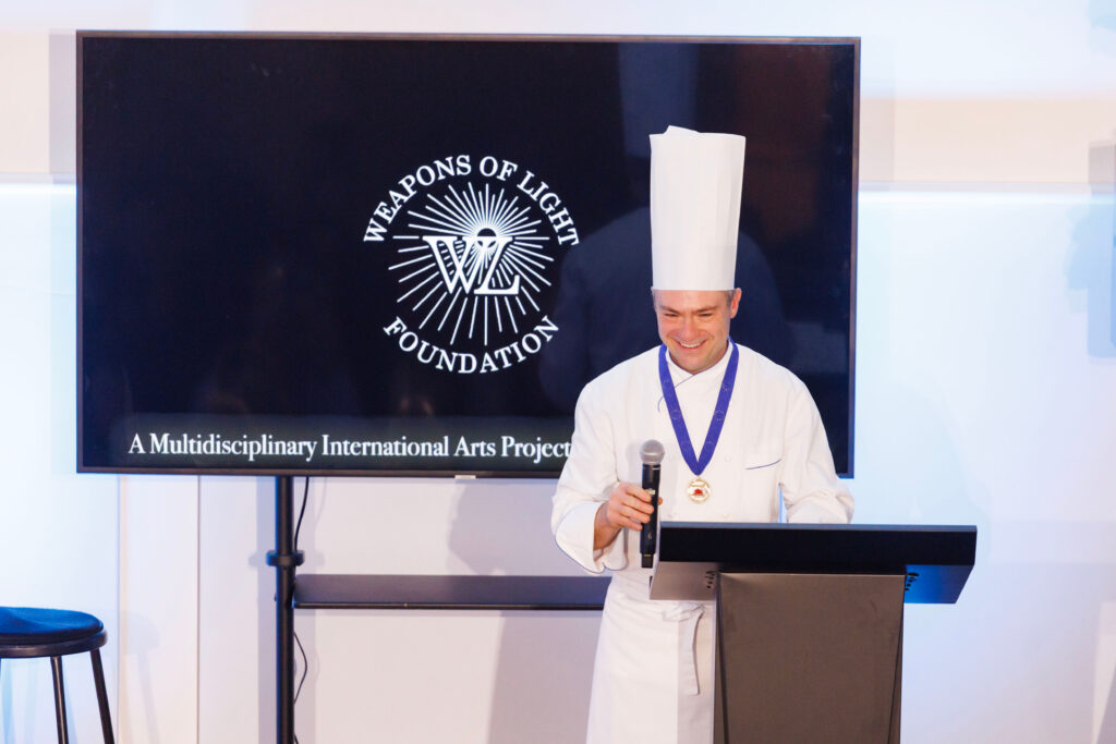 Weapons of Light Foundation founder Philip Lawson and Gallery owners Michael Hackett and Francis Mill welcomed distinguished guests including space architect Anastasia Prosina and trauma surgeon Jonathan Nguyen of sponsor Windy Holler. Chef Lionel Haeberle created an extraordinary Bay Area-meets-French culinary journey featuring Dungeness crab tartare, Pier 39 smoked mussels with saffron aioli, and delicate crêpes with Ghirardelli chocolate. San Francisco Symphony’s Amos Yang and Charles Chandler provided the evening’s musical centerpiece through their performance of Shinji Eshima’s “Bariolage,” recreating the artistic gatherings that once defined this historic space seventy years ago. The successful fundraising of the Weapons of Light Foundation enables them to send a trauma surgeon and medic to assess Bethlehem House of Bread and provide medical evaluations and medicine to children in need of care.