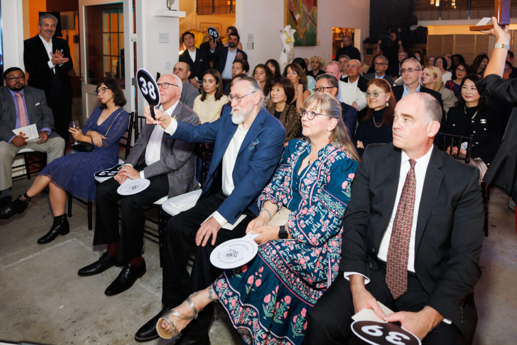 The Weapons of Light Foundation took over North Beach’s historic Hackett Mill Gallery for one night of artistic philanthropy on September 20, raising critical funds for India’s Bethlehem House of Bread through their second annual Artist Salon and Benefit Auction. The remarkable setting—architect Henry Temple Howard’s 1940 sculpture studio originally designed for his brother Robert Boardman Howard and wife Adaline Kent—provided a stunning backdrop for the high-stakes art auction. The lively paddle raise saw Hotmail founder Sabeer Bhatia win the coveted Weapons of Light sculpture by conceptual artist Philip Lawson during a live auction that supports 46 children and 5 widows in Rajahmundry, India.